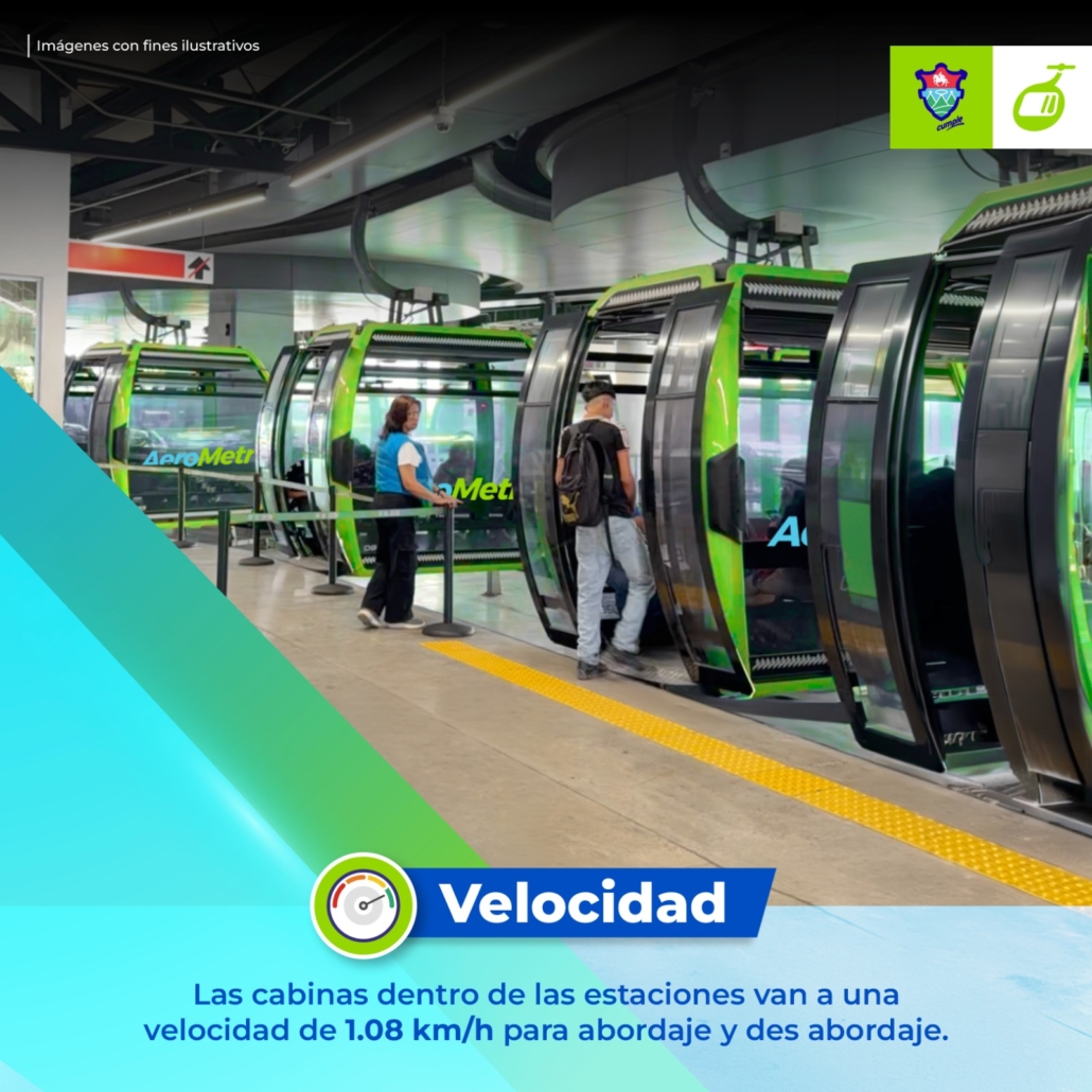 Dentro de las estaciones, las cabinas del AeroMetro se moverán a una velocidad reducida de 1.08 km/h, lo que permite un abordaje y desabordaje más seguro. Esta velocidad es considerablemente menor a la de otros sistemas como las gradas eléctricas, brindando mayor tranquilidad a quienes requieren más tiempo para subir o bajar.