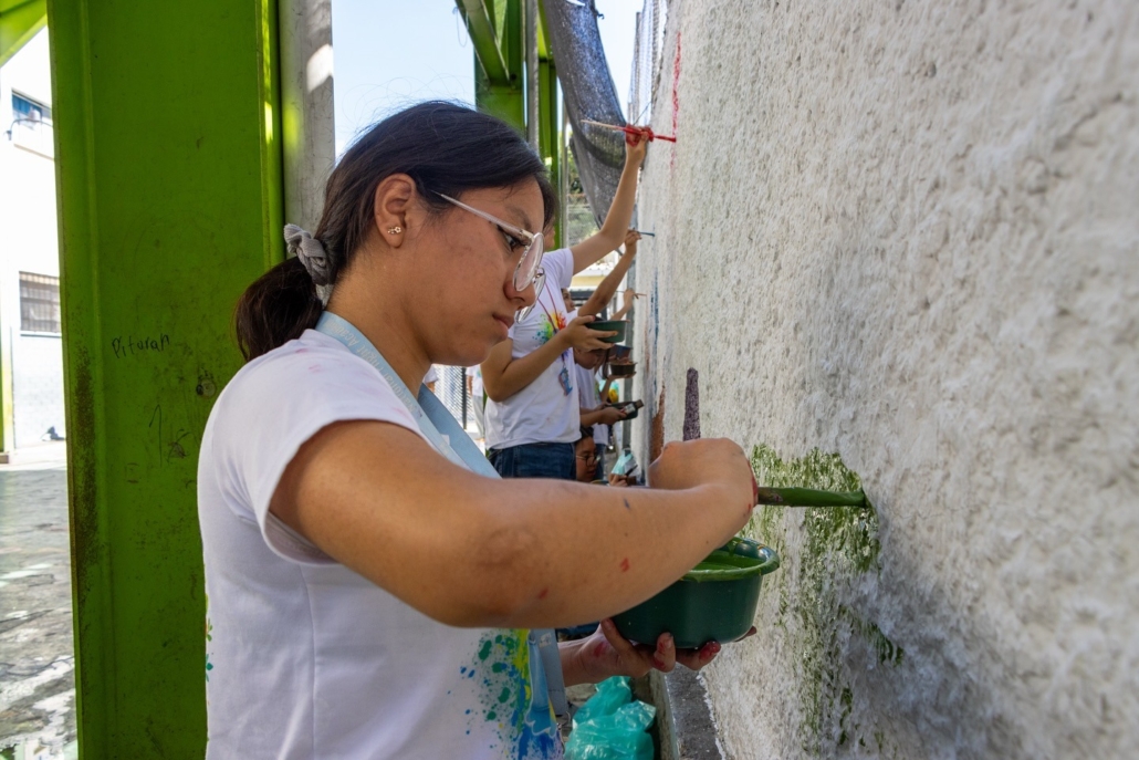 Estudiantes de 4º y 5º diversificado del IGA se pusieron en la piel de artistas urbanos por un día. Junto a voluntarios, transformaron las paredes grises de la Escuela Oficial Urbana Mixta No. 72, en la zona 1, en coloridos murales que ahora iluminan la imaginación de cientos de niños.